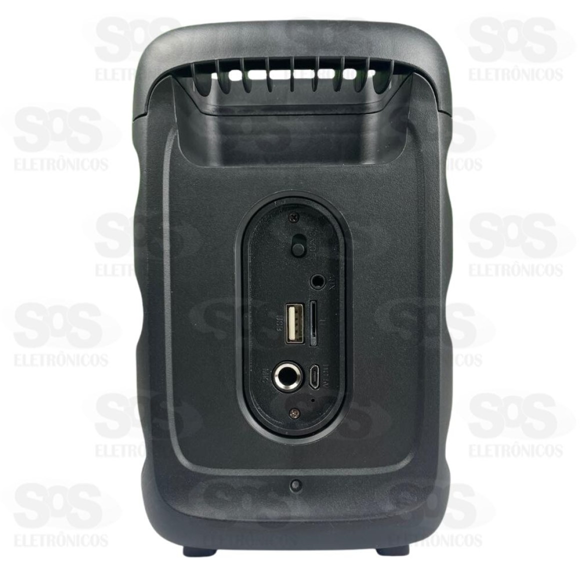 Uma caixa de som completa com; entrada para USB, TF, Auxiliar, P10 e botão de grave (bass)