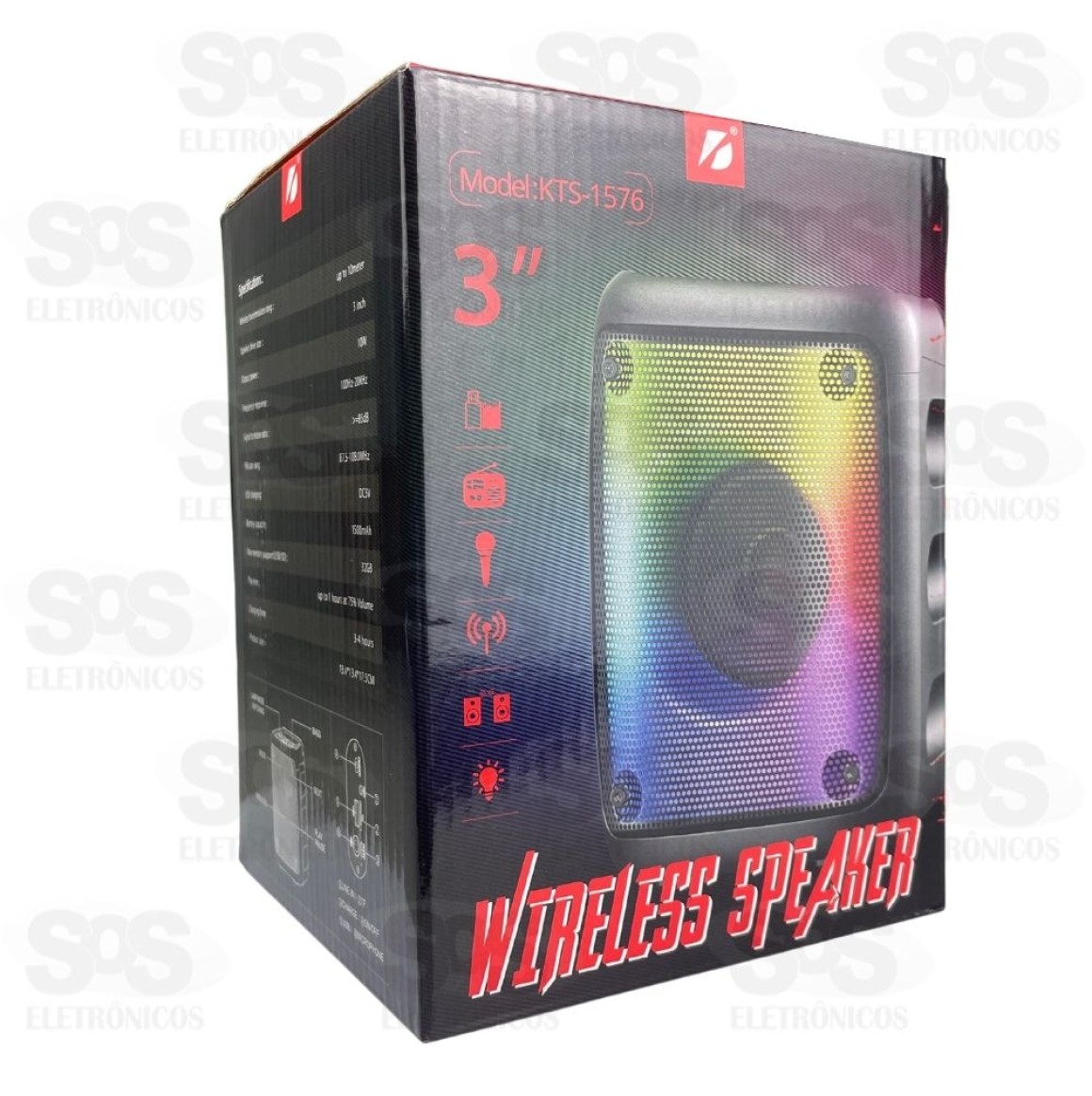 Caixa De Som 10W Led RGB Botão Bass KTS-1576