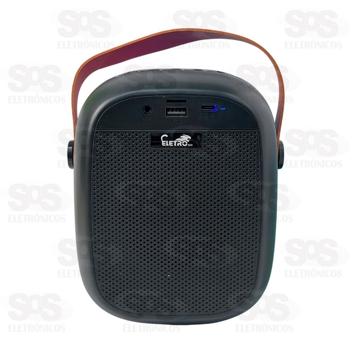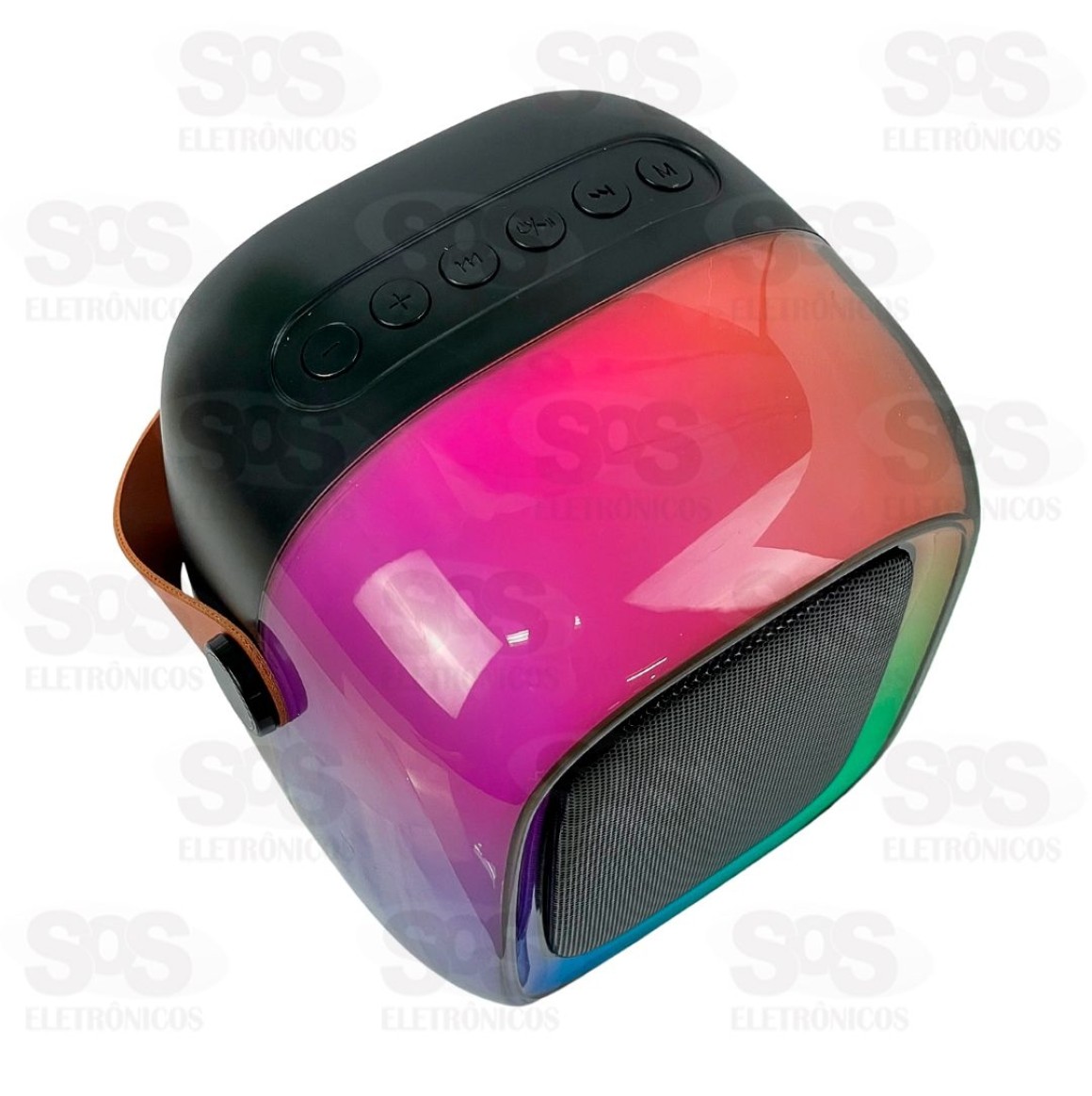 Design moderno e estiloso, com diversos efeitos de luzes de LED e alça para transporte.