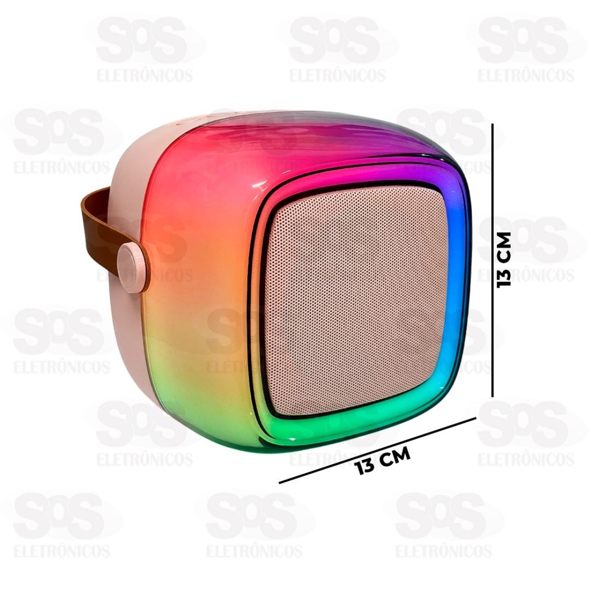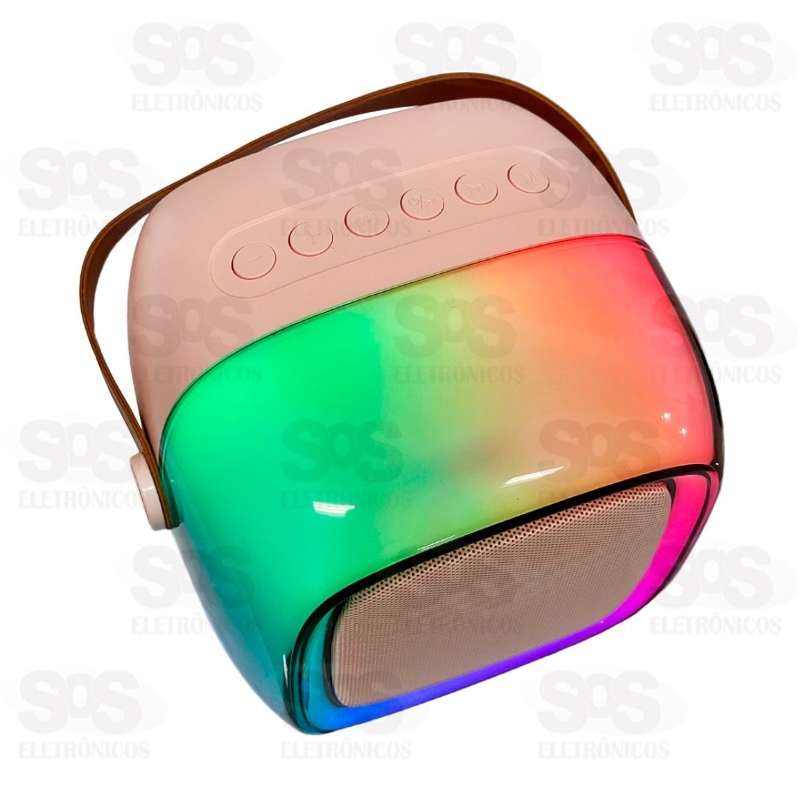 Design moderno e estiloso, com diversos efeitos de luzes de LED e alça para transporte.