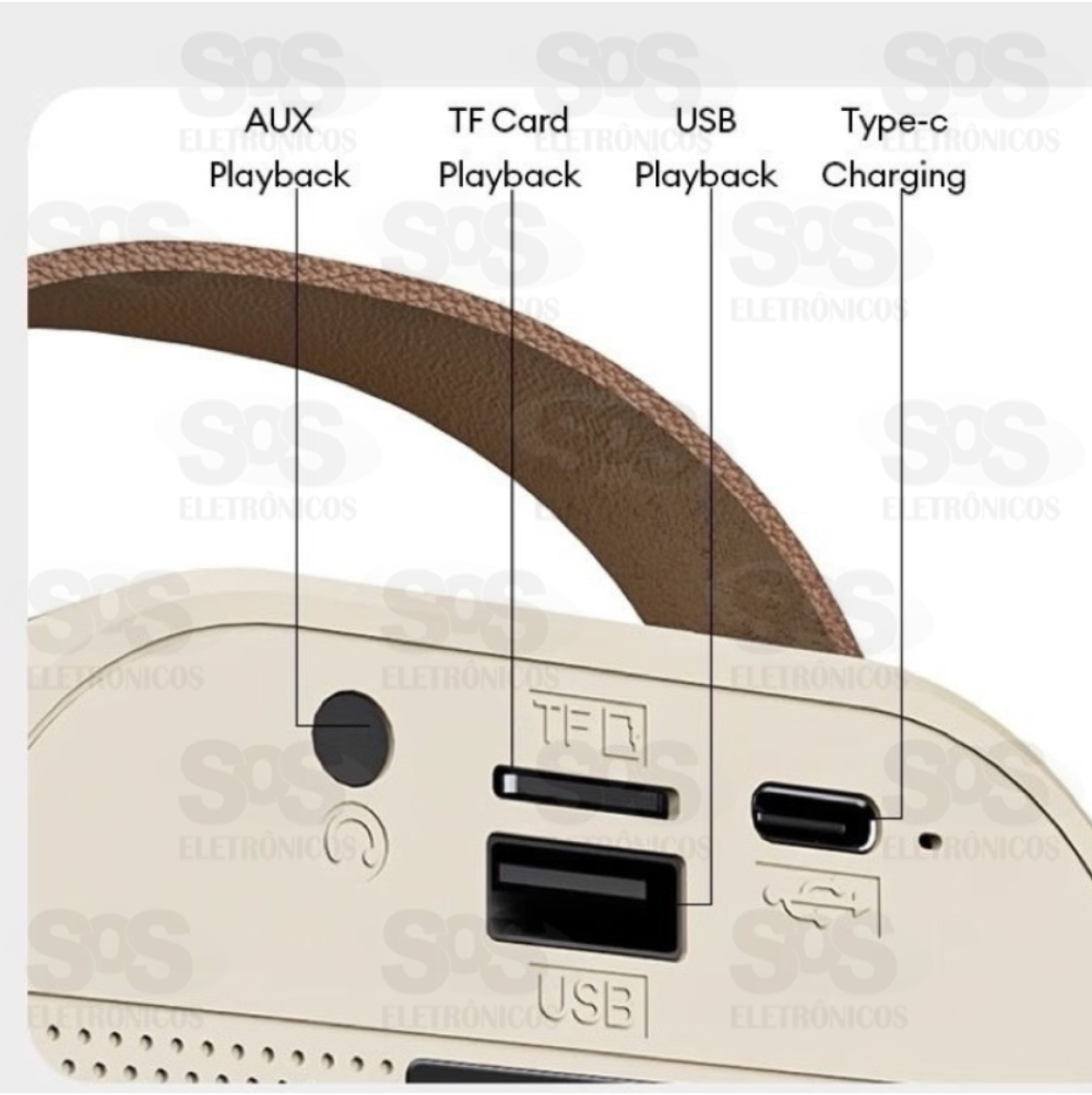 Conexão bluetooth e rádio FM, além de contar com entradas para cabo AUX, USB e cartão TF.