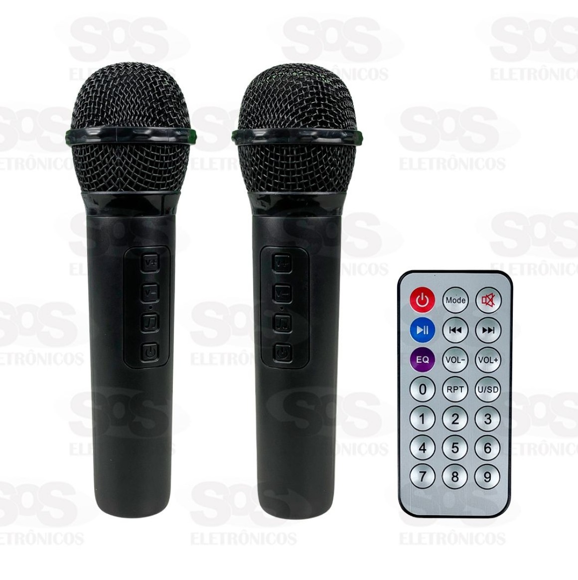 Acompanha 2 microfones e 1 controle remoto