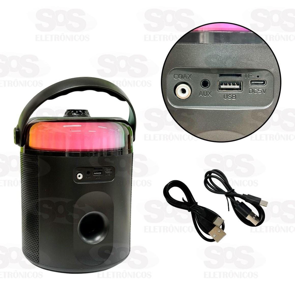 Entrada para USB, TF, AUX e COAX.