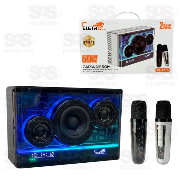 Caixa De Som Alto-Falante Karaokê Com 2 Microfones Eletromex EL-1013