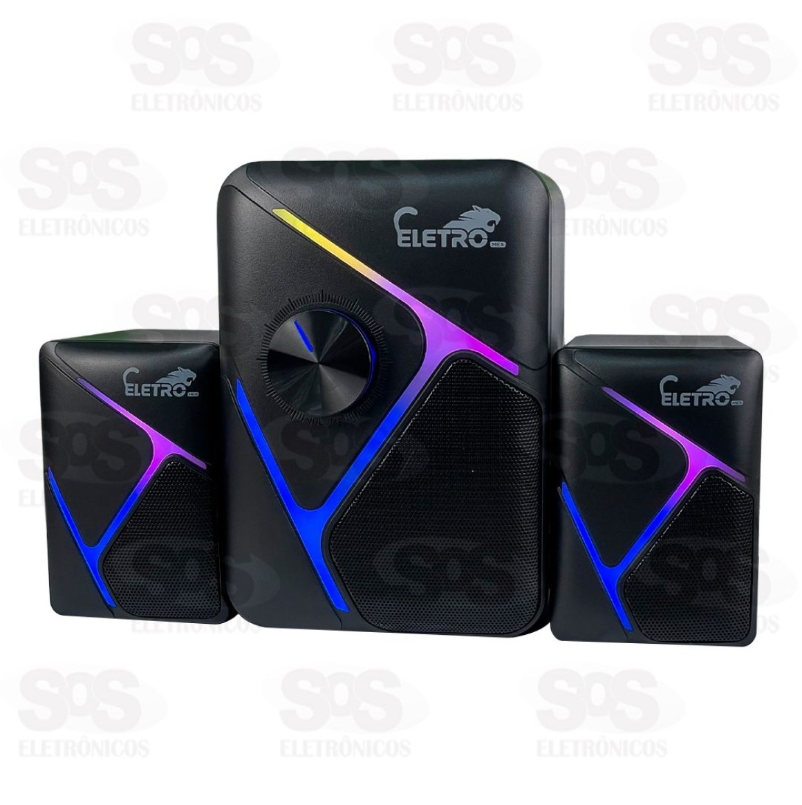 Caixa de Som Multimídia Com LED 5W+3Wx2 Eletromex EL-6007