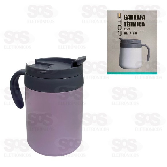 Caneca Térmica 500ML Cores Variadas BTOP BM-P1648 Garrafa térmica que mantém as bebibas quentes ou frias por horas. Tampa seladora anti-vazamentos. Fundo anti-derrapante. Capacidade: 500 ml Cores variadas