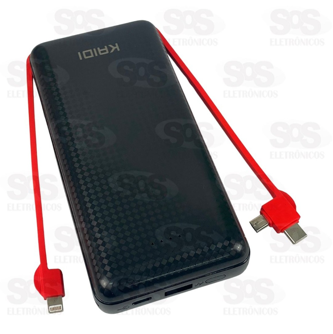 Carga Extra 20.000mAh Com 3 Interfaces Kaidi KD-232