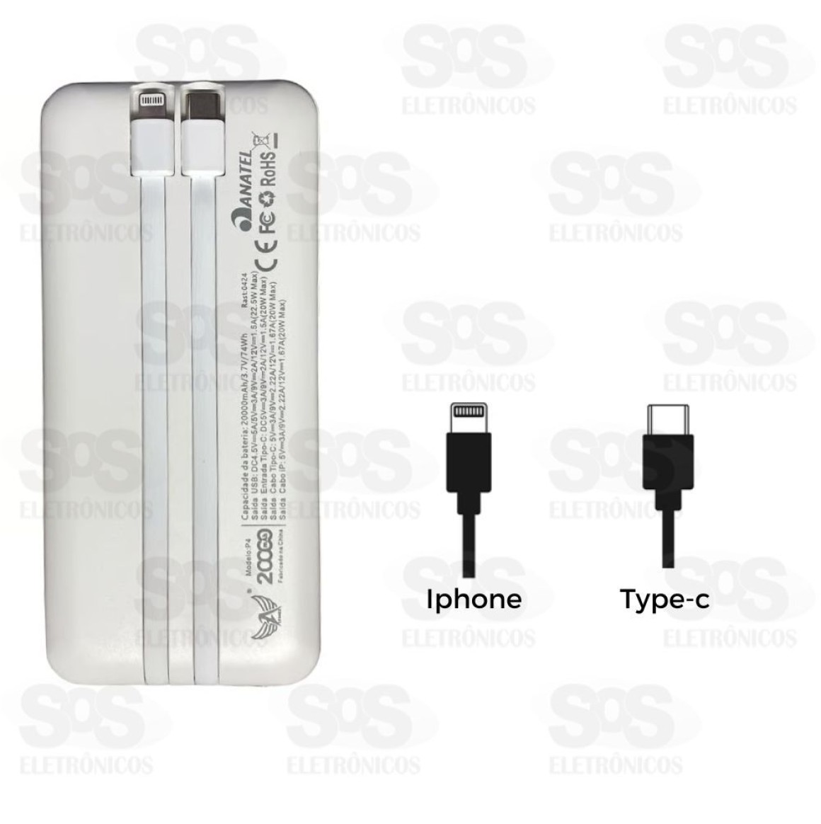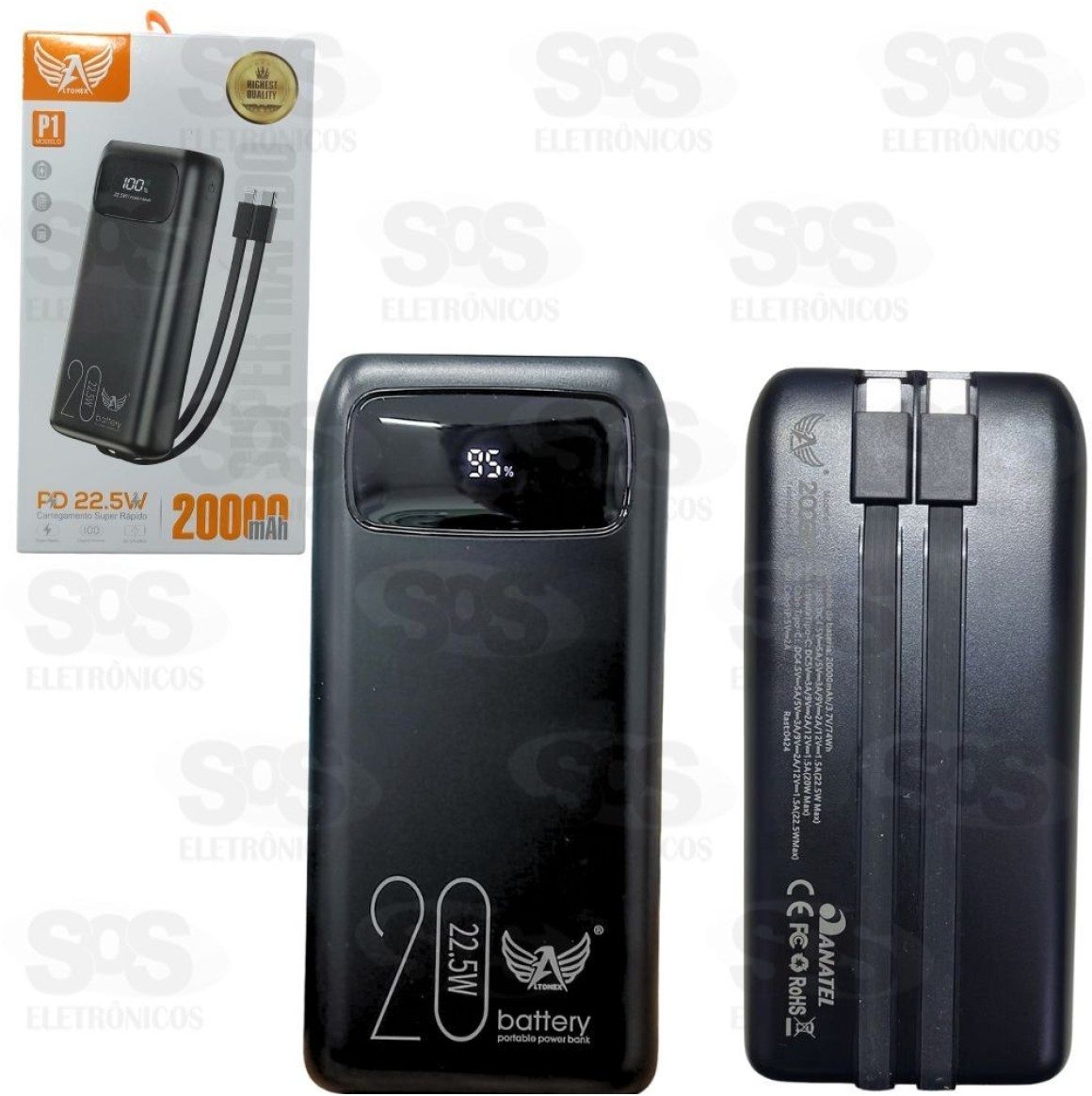 Carga Extra Flash 20.000mAh Com 2 Cabos Altomex P-1
