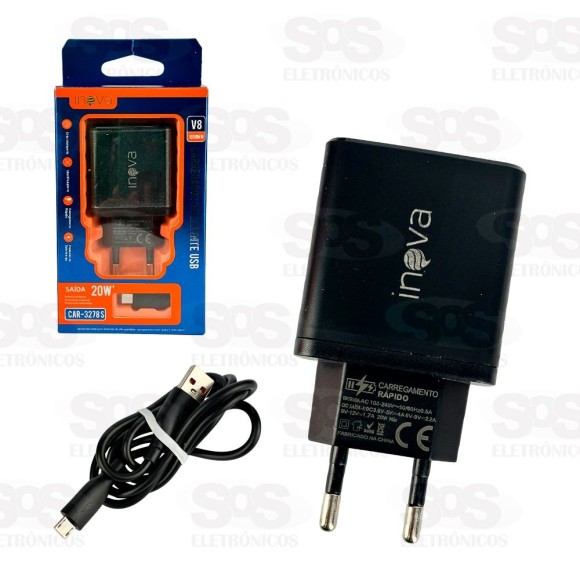 Carregador Rápido 20W Com Cabo Micro V8 Inova CAR-3278S