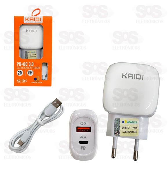 Carregador Turbo 20W Com Cabo Type C Kaidi KD-106C