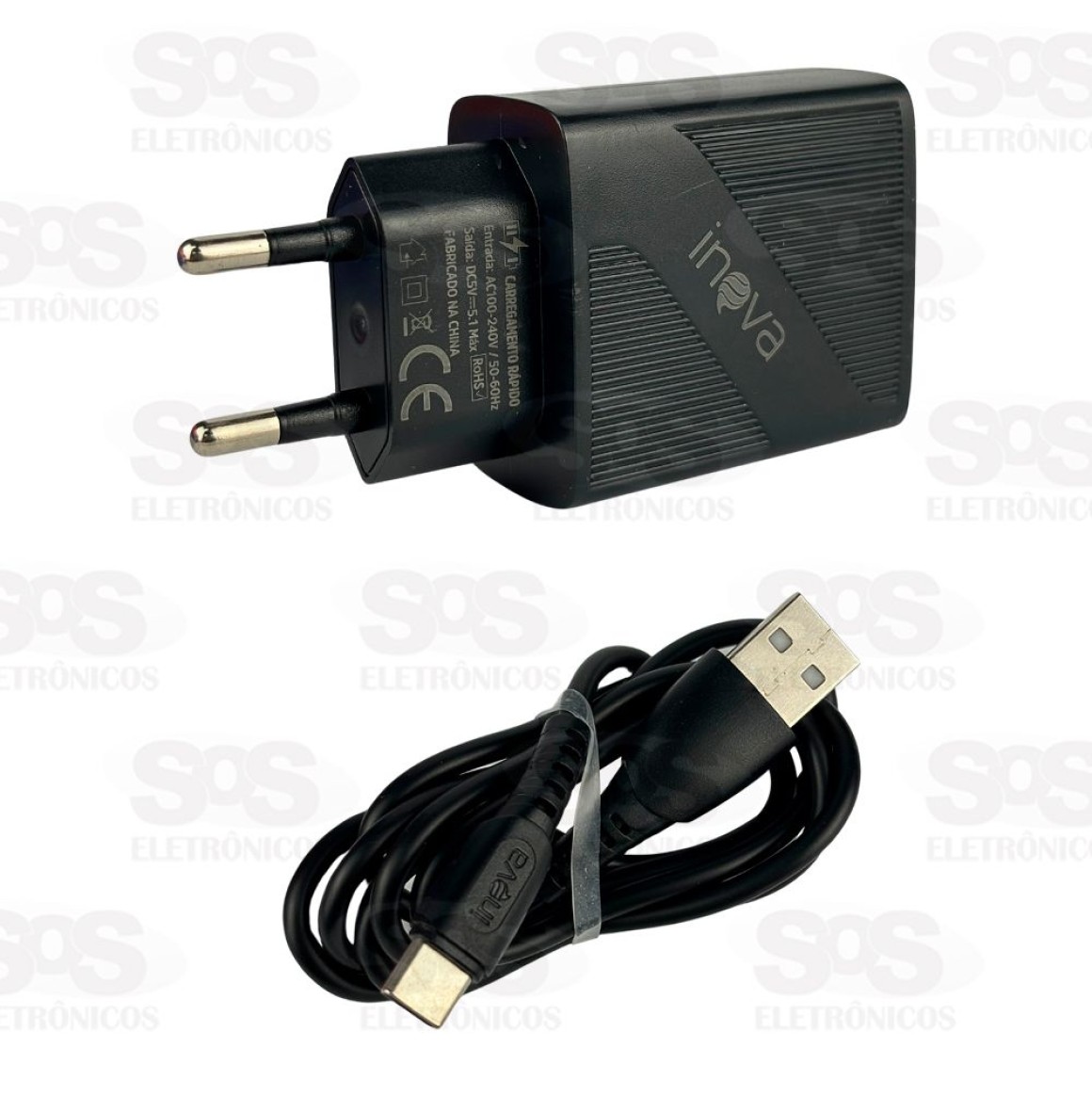 Carregador 3 USB 5.1A Com Cabo Type C Inova CAR-3250C