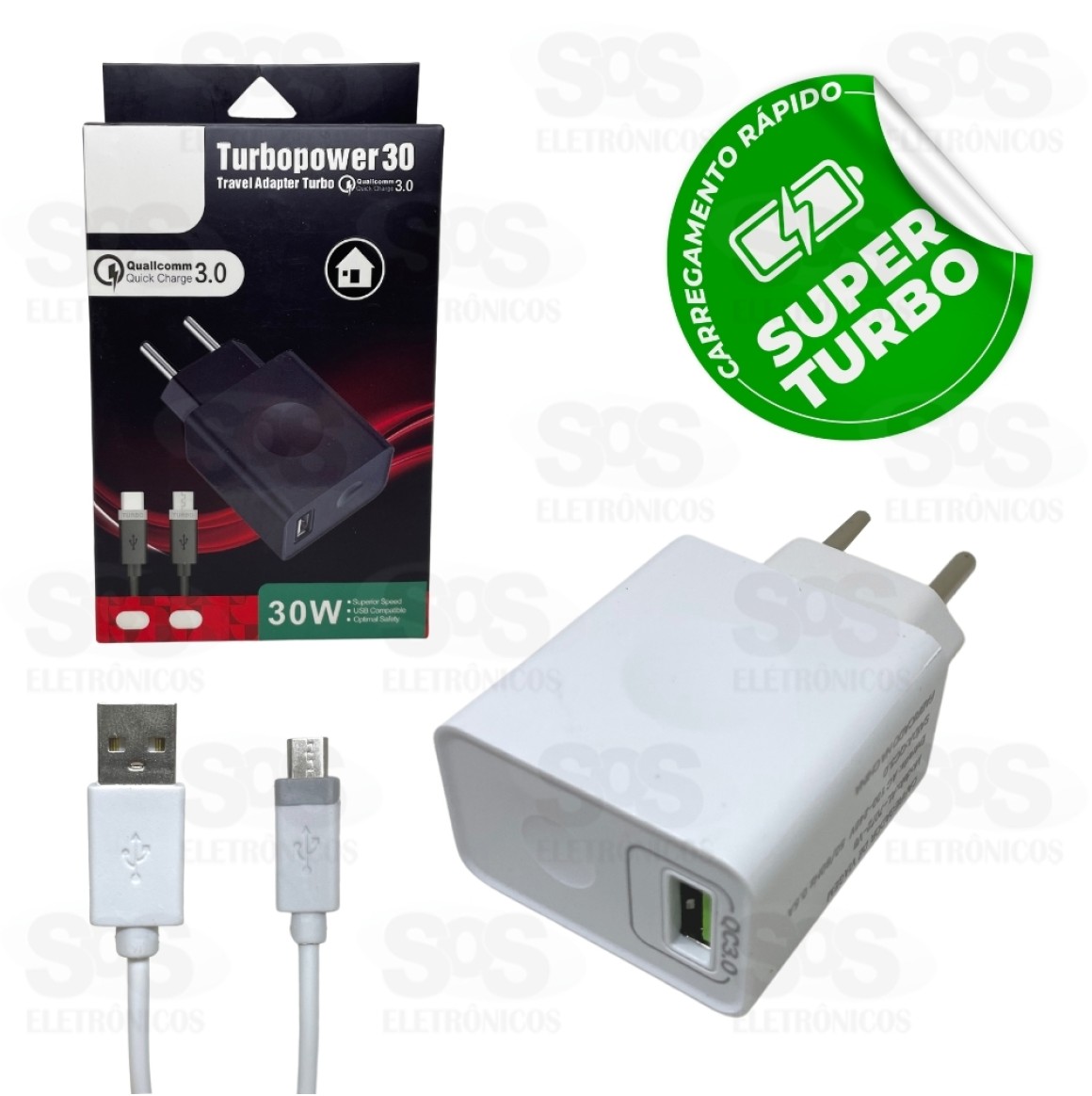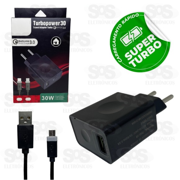 Carregador Turbo Preto 30W Com Cabo Micro USB V8 Altomex 7092 7072