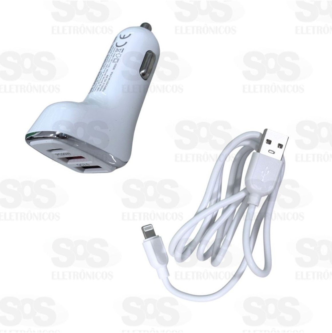Carregador Veicular Com Cabo Iphone 38W Kaidi KD-304A