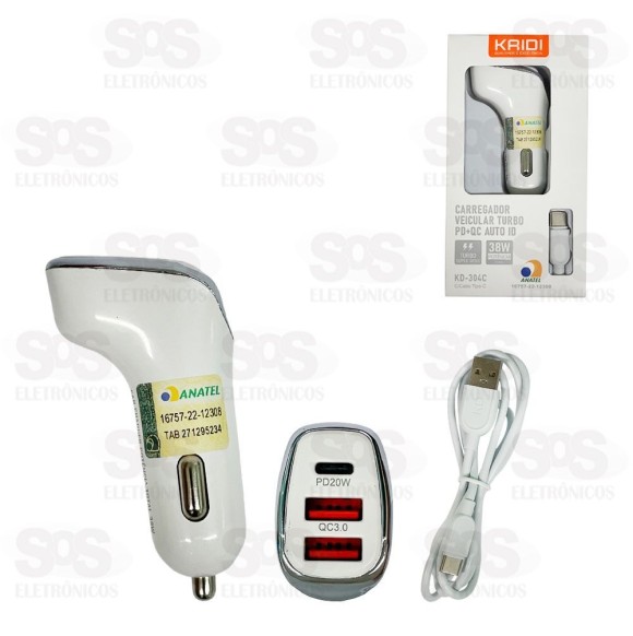 Carregador Automotivo USB+PD 38W Kaidi KD-304C