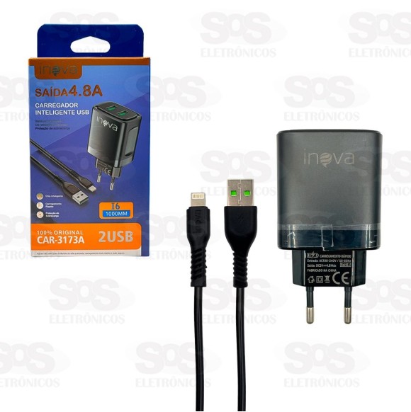 Carregador 2 USB 4.8A Cabo Iphone Inova CAR-3173A
