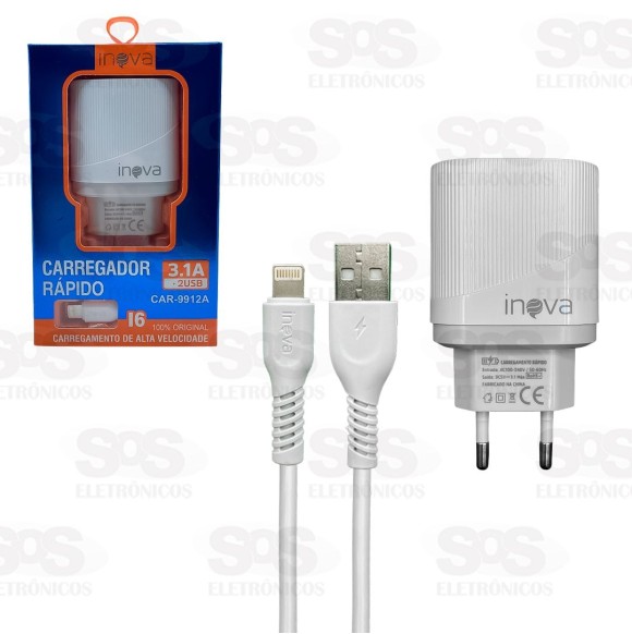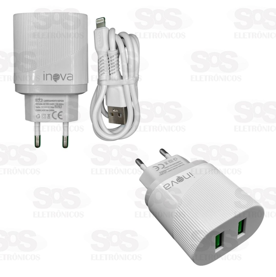 Carregador 2 USB 3.1A Com Cabo Iphone Inova CAR-9912A