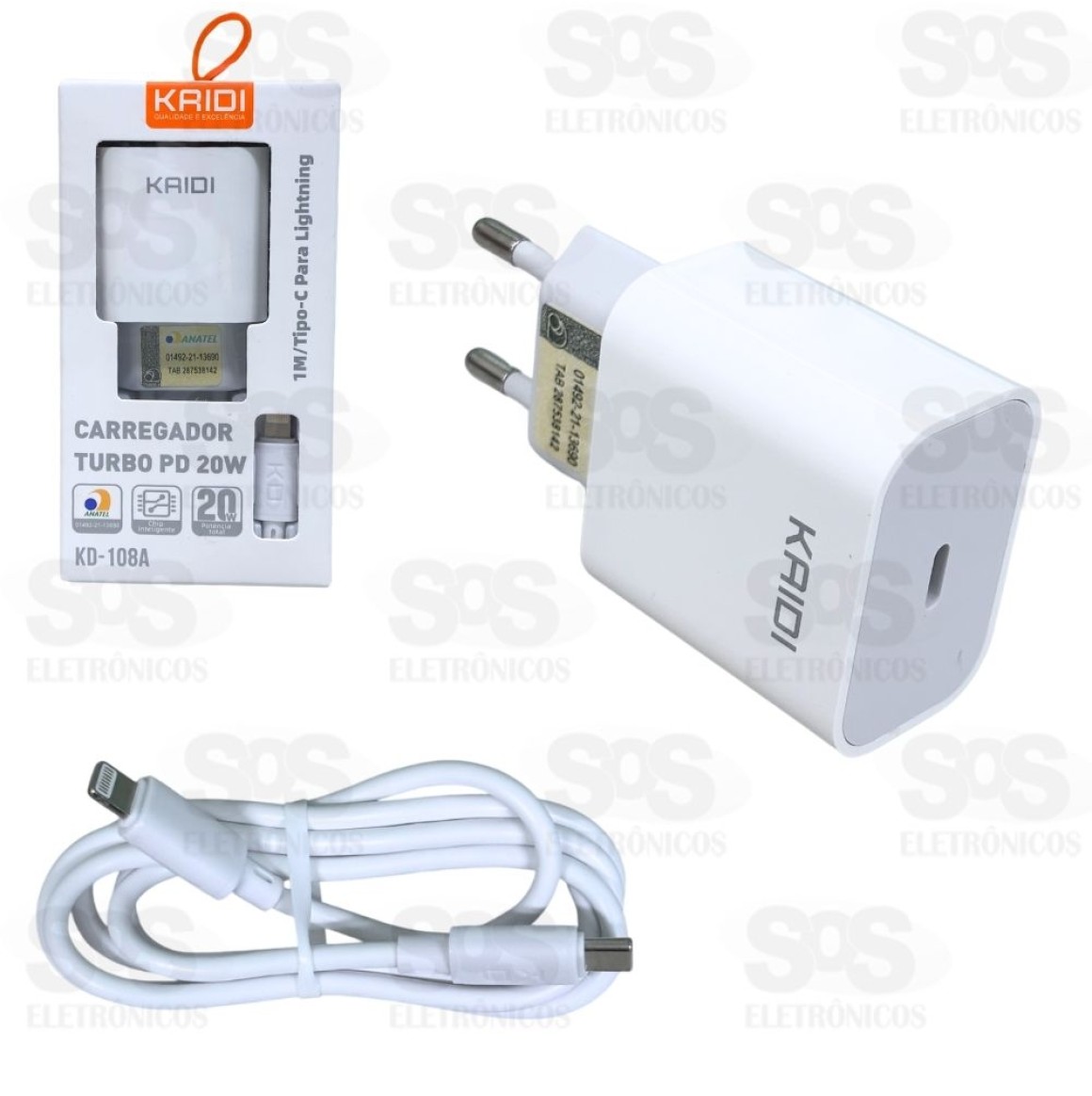 Carregador PD 20W Auto-ID Com Cabo Iphone Kaidi KD-108A