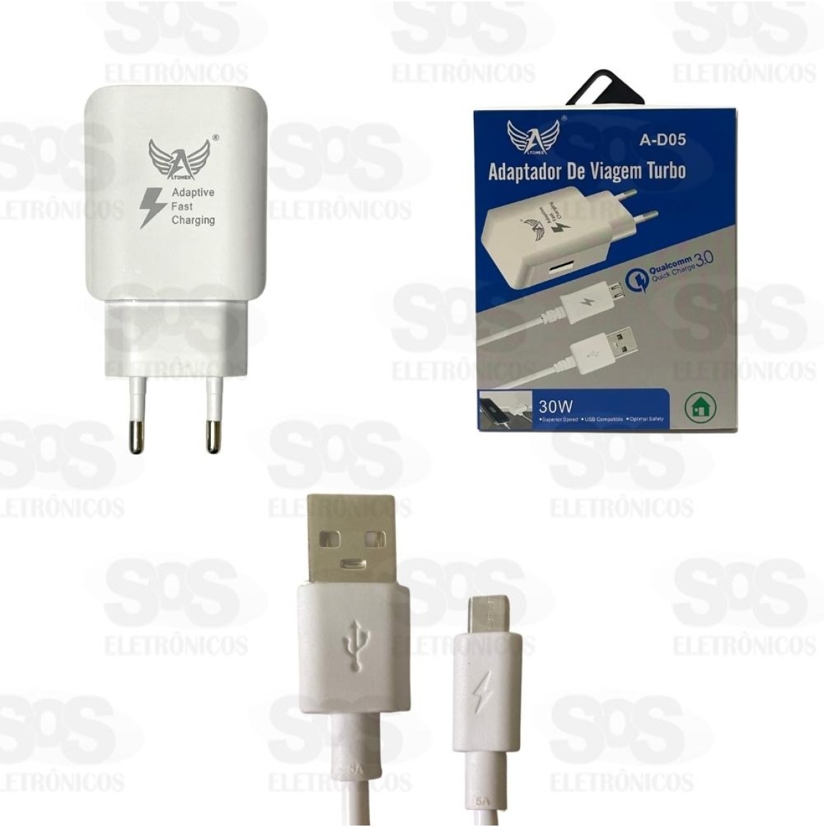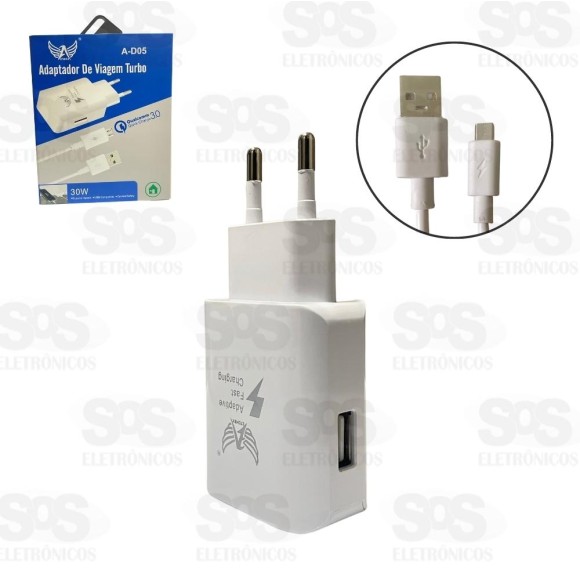 DESCRIÇÃO : Alto nível de eficiência e rapidez no carregamento Turbo. Adaptador de Viagem Turbo A-D05 30W 5.0A Cabo Reforçado e Resistente Características: