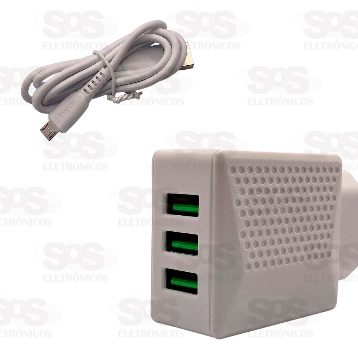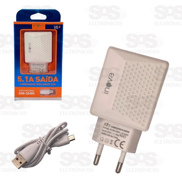 Carregador 3 USB 5.1A Com Cabo Micro V8 Inova CAR-3246S