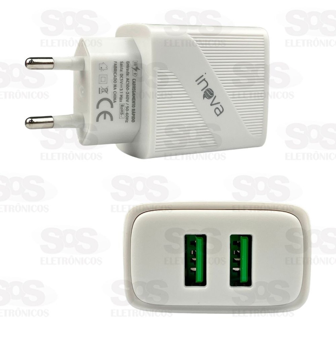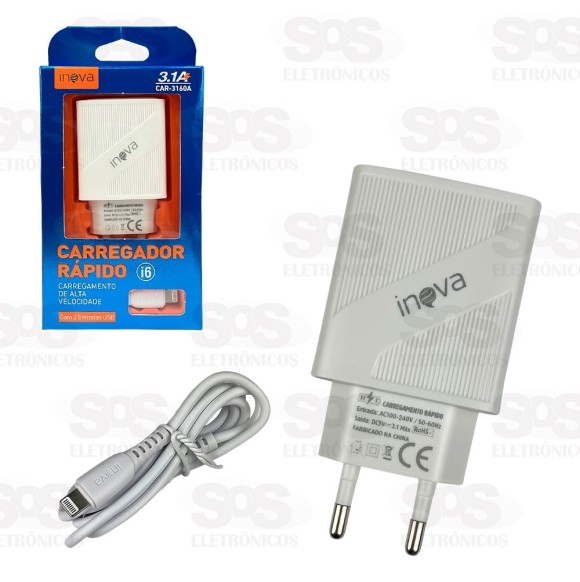 Carregador Rápido 2 USB 3.1A Com Cabo Iphone Inova CAR-3160A
