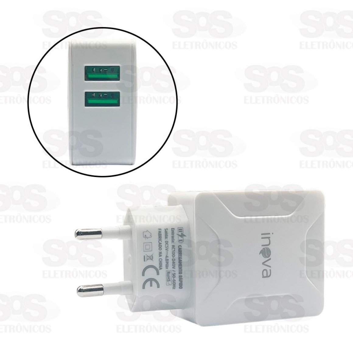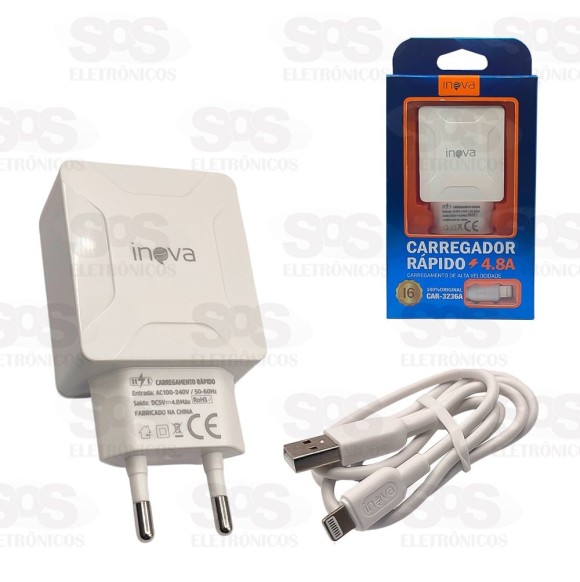 Carregador Rápido 2 USB 4.8A Com Cabo Iphone Inova CAR-3236A