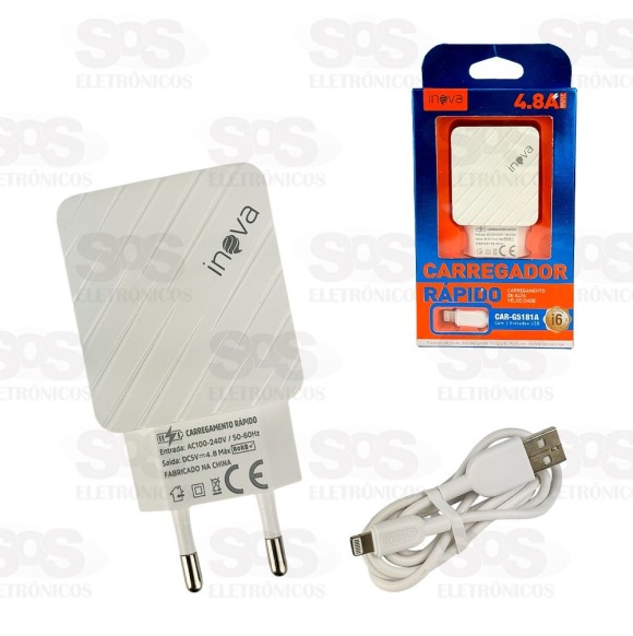 Carregador Rápido 2 USB 4.8A Cabo Iphone Inova CAR-G5181A