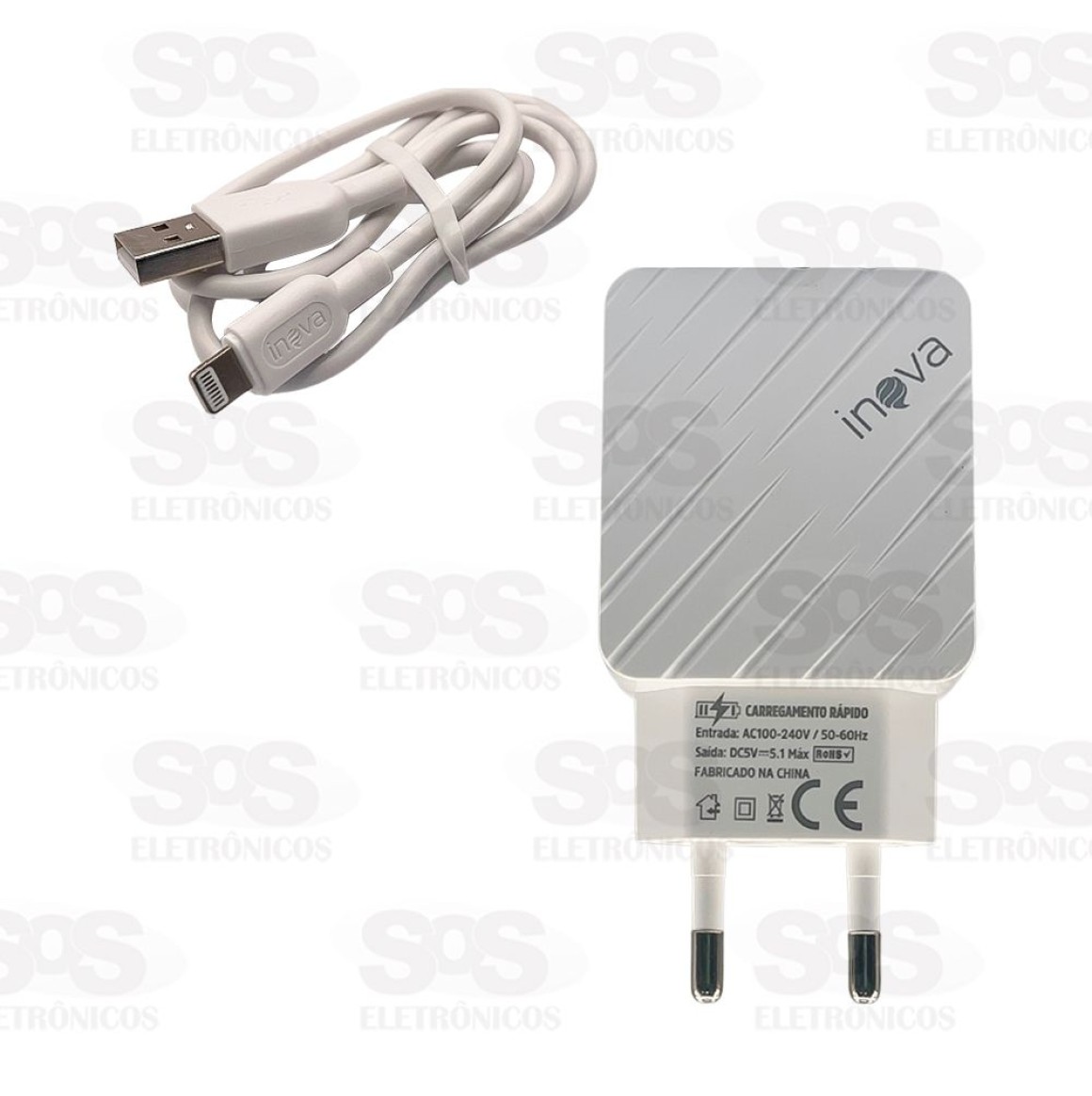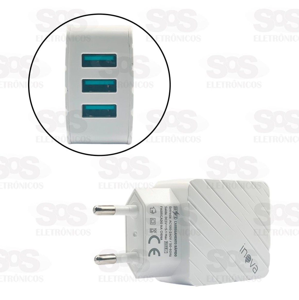 Carregador Rápido 3 USB 5.1A Cabo Iphone Inova CAR-5266A