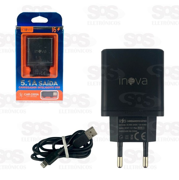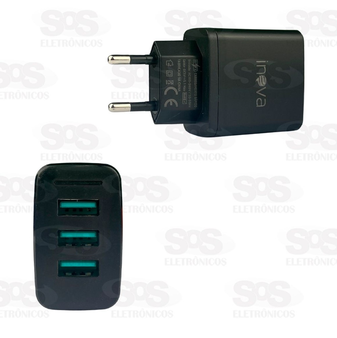 Carregador Rápido Iphone 5.1A 3 USB Inova CAR-3305A