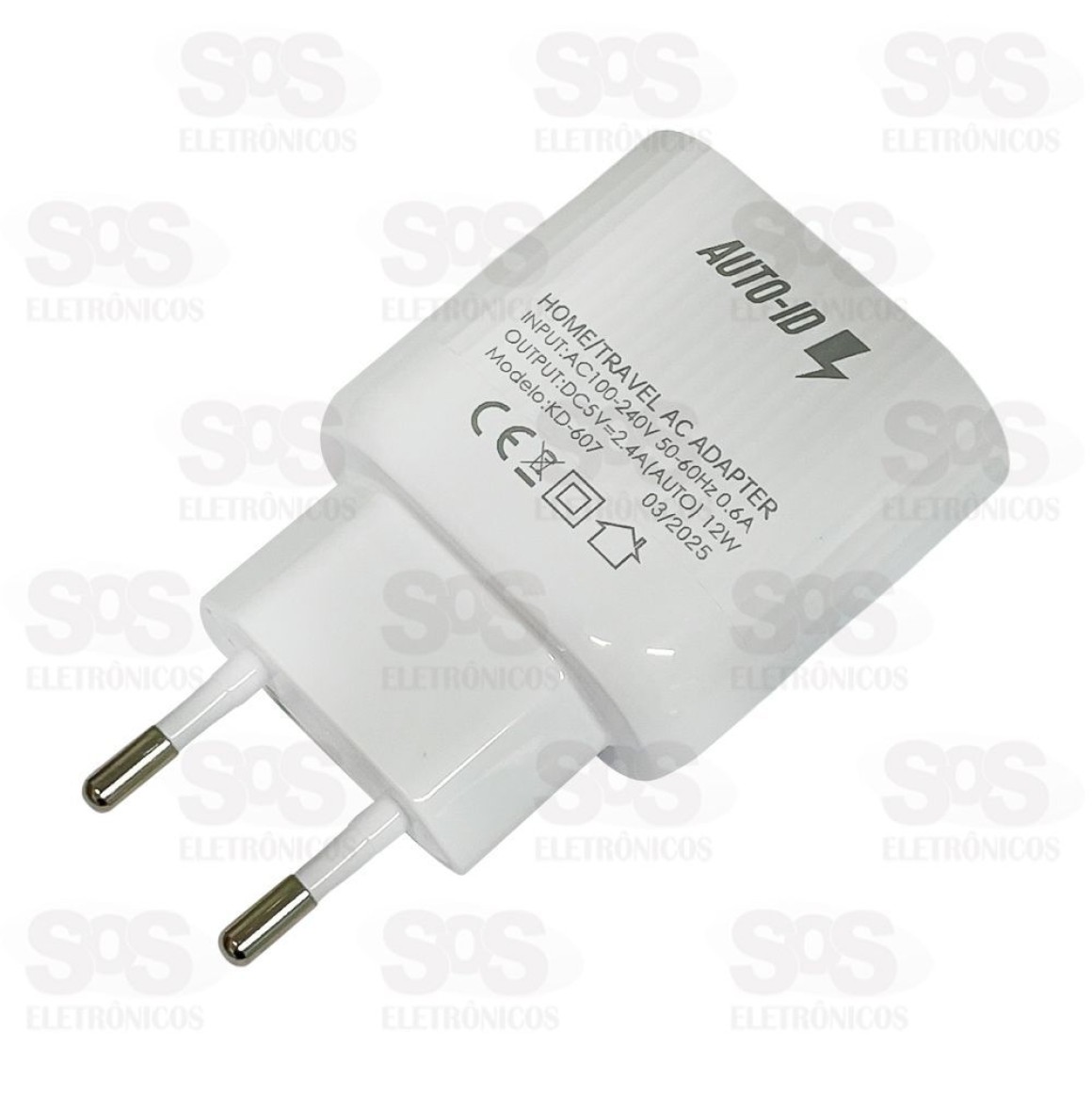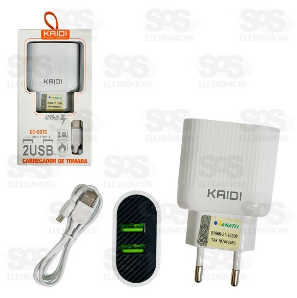 Carregador 2 USB 2.4A Com Cabo Type C Kaidi KD-607C