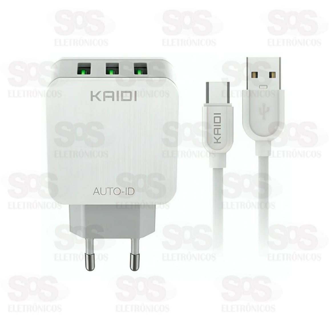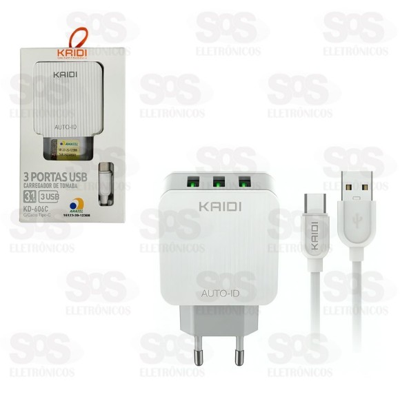 Carregador 3 USB 3.1A Com Cabo Type C Kaidi KD-606C