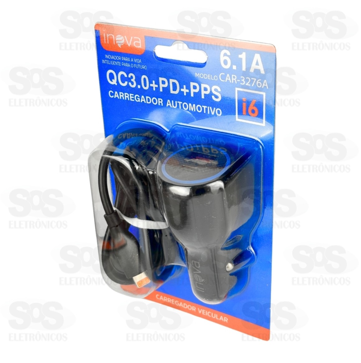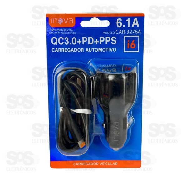 Carregador Veicular Com Cabo Iphone 6.1A USB+Type C Inova CAR-3276A