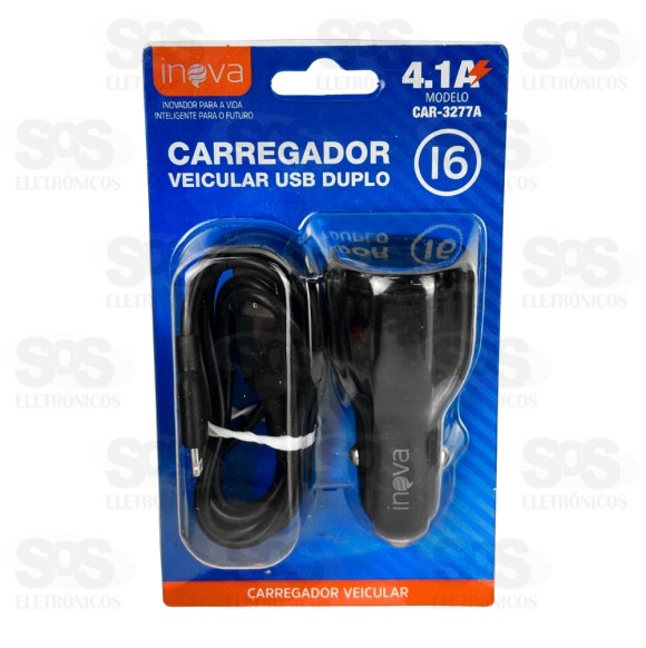 Carregador Veicular Com Cabo Iphone 4.1A 2USB Inova CAR-3277A