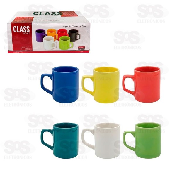 Conjunto Caneca de Café 85ML Cerâmica 6 Peças 826 Canecas para café feitas de cerâmica coloridas. Com bordas arredondadas. Capacidade de 85ml. Tamanho: 8 x 6,3 cm Cores variadas