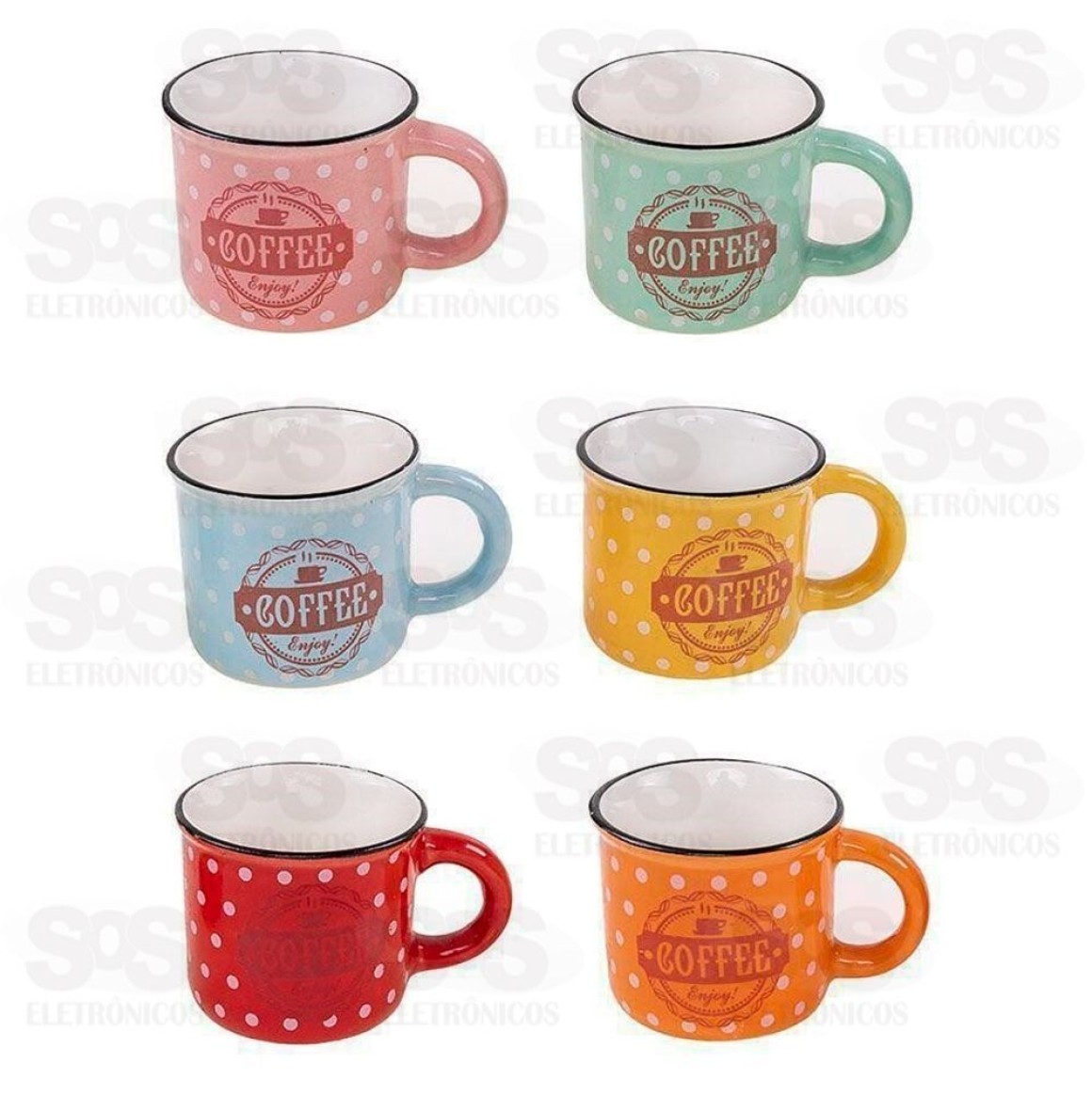 Conjunto Caneca de Café 85ML Cerâmica 6 Peças 973 Canecas para café feitas de cerâmica coloridas. Com bordas arredondadas. Capacidade de 85ml. Tamanho: 8 x 5 cm Cores variadas