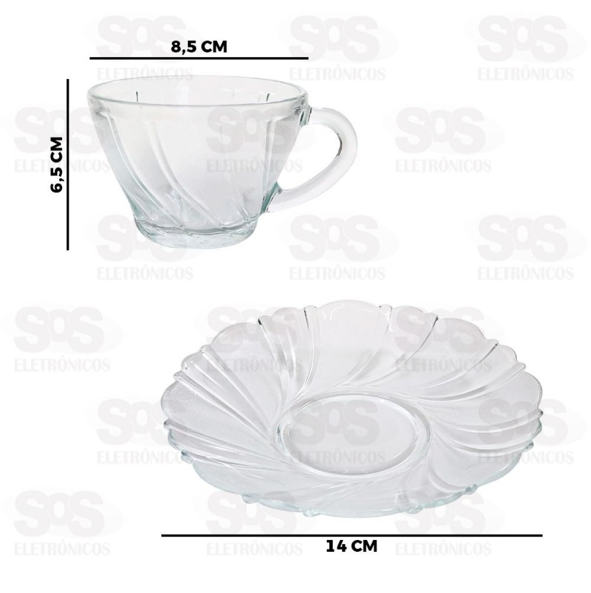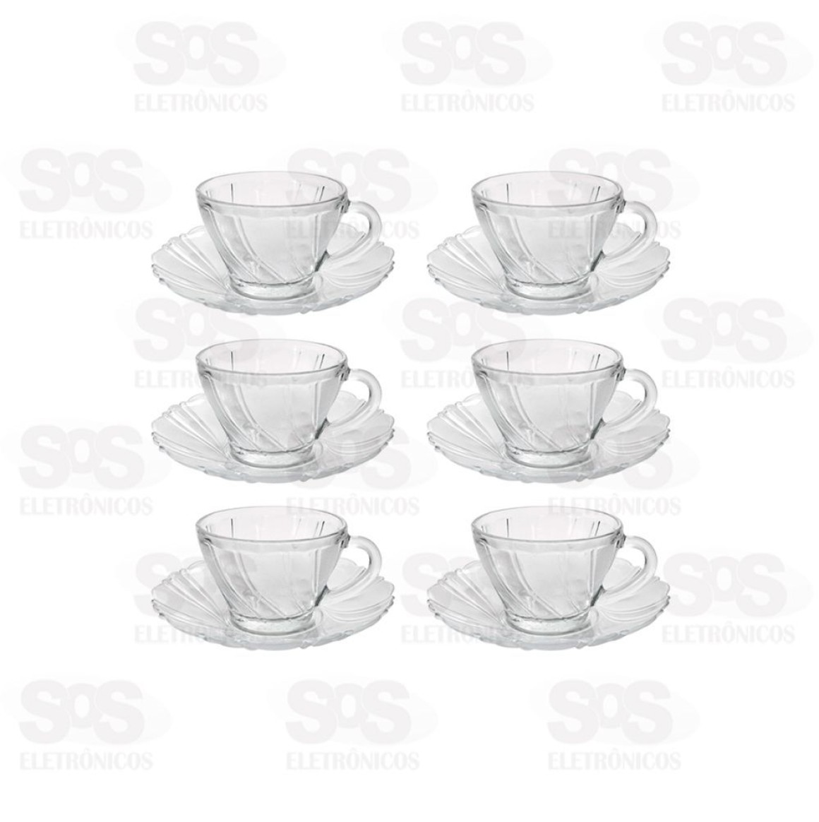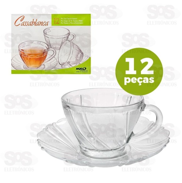 Conjunto Xícaras e Pires Casablanca 12 Peças TS6-707 Kit com 6 xícaras e 6 pires feitos de vidro. Com textura fina em alto relevo, sirva chá ou café com muito elegância. Tamanho da xícara: 8,5 x 6,5 cm Tamanho do pires: 14 cm FOTO ILUSTRATIVA.