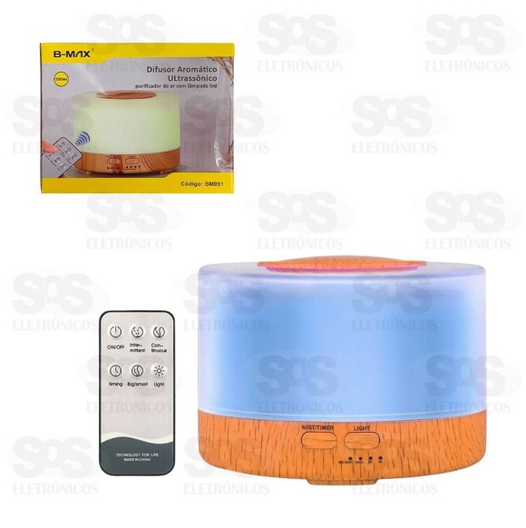 Difusor Umidificador Aromático Ultrassônico 300ML B-Max BM091
