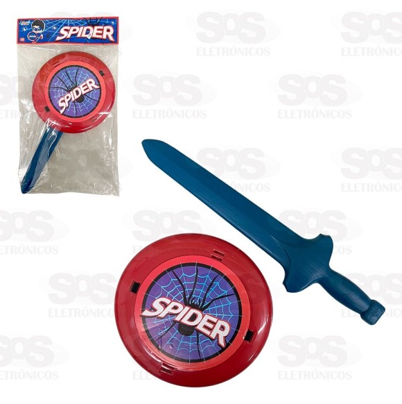 Escudo e Espada Spider Mini Toys 0465 Acompanha 1 espada e 1 escudo do herói spider. Material: Plástico Medidas Aproximadas: Escudo: 23 cm Espada: 42 cm Com selo do Inmetro Indicado para maiores de 3 anos Cores Sortidas