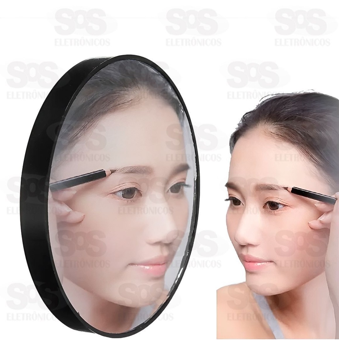 Espelho com aumento de 5x, ideal para colocar lentes de contato, se maquiar ou fazer a barba.