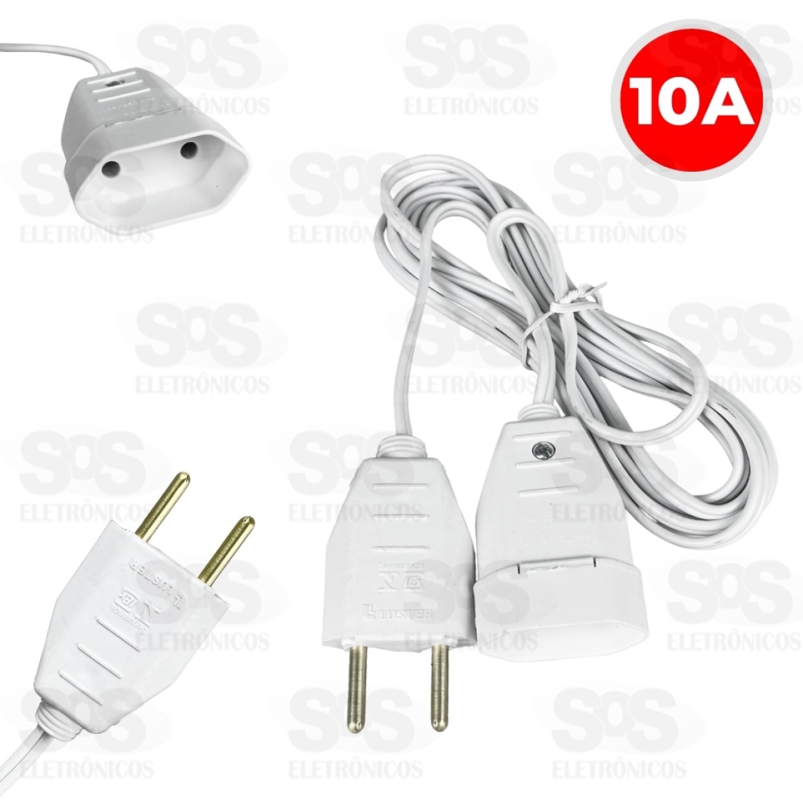 Extensão Simples 5 Metros 10A 2P Luster 2185Fio 2 x 0,75 mm²Certificado conforme NBR13249/141362200W EM 220V1270W em 127VExtensão macho/fêmea BCO