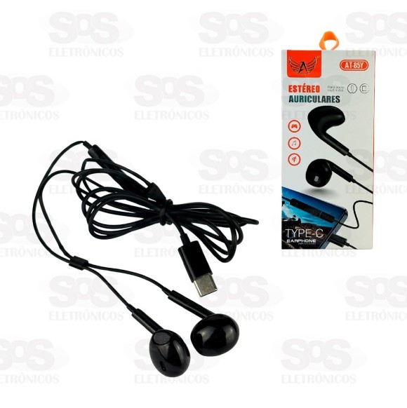 Fone De Ouvido Com Microfone Type C Altomex AT-85Y Fone com excelente qualidade e com ótimo encaixe, garantindo muito conforto. Com microfone integrado e botões de controle no cabo. 120 cm de comprimento. Alto-falante de 15 mm. Entrada Type C.