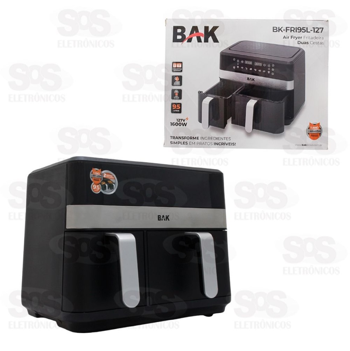 Fritadeira Elétrica Air Fryer Duas Cestas 9,5 Litros 127V Bak BK-FRI95L-127
