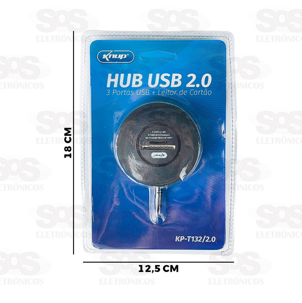 Hub USB 2.0 Com 3 Portas e Leitor De Cartão Knup KP-T132/2.0