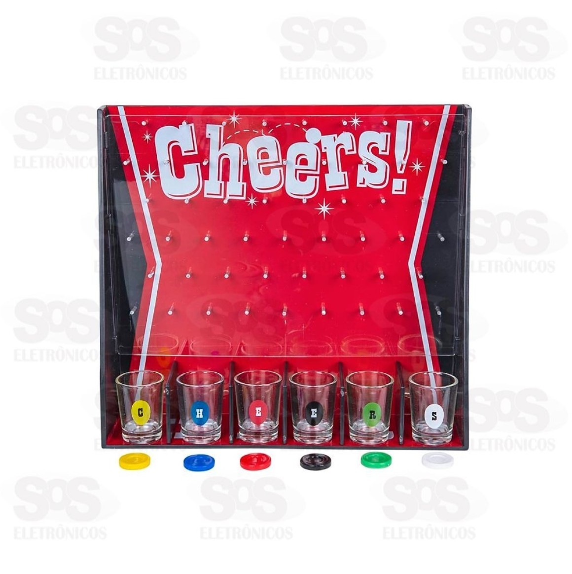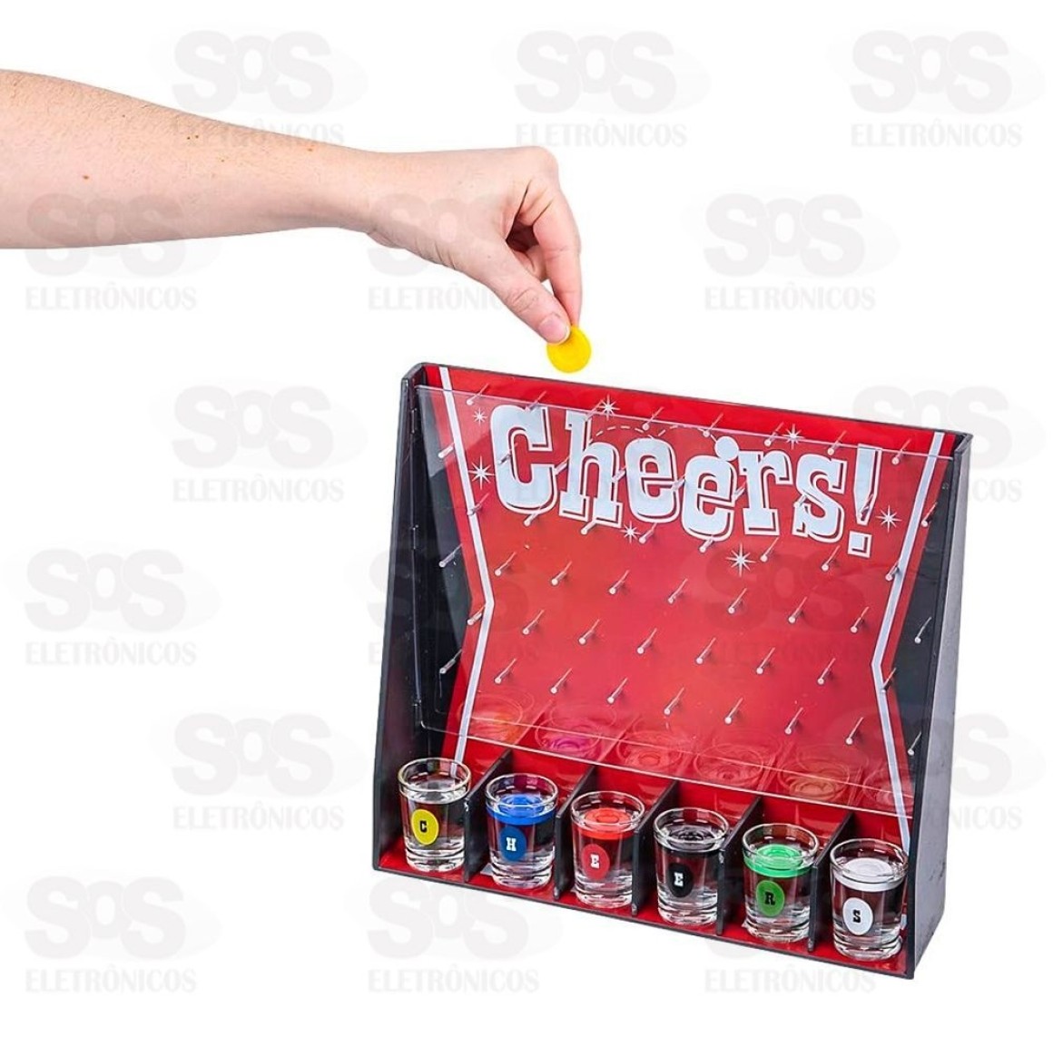 Jogo Das Fichas Drinking Game HM6657 Jogo divertido para animar qualquer festa. Solte a ficha e acerte o copo. Acompanha 6 copos para shots. Recomendado para adultos. Material: Vidro e plástico