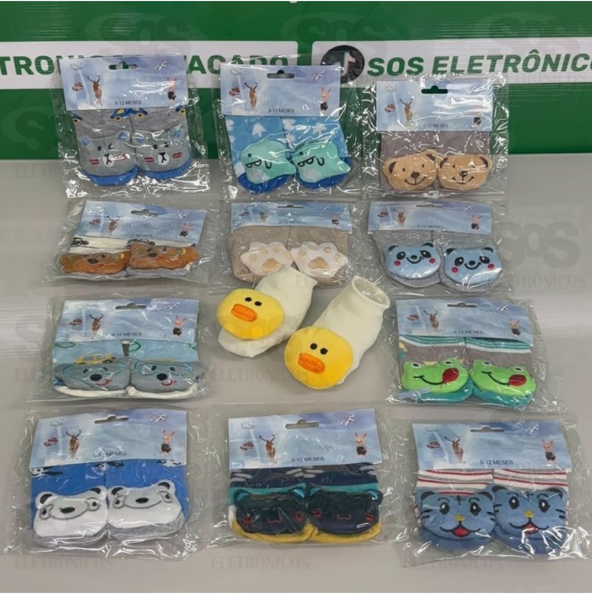 Kit 12 Pares Meia Bebê Com Sininho e Pompom Sortidas
