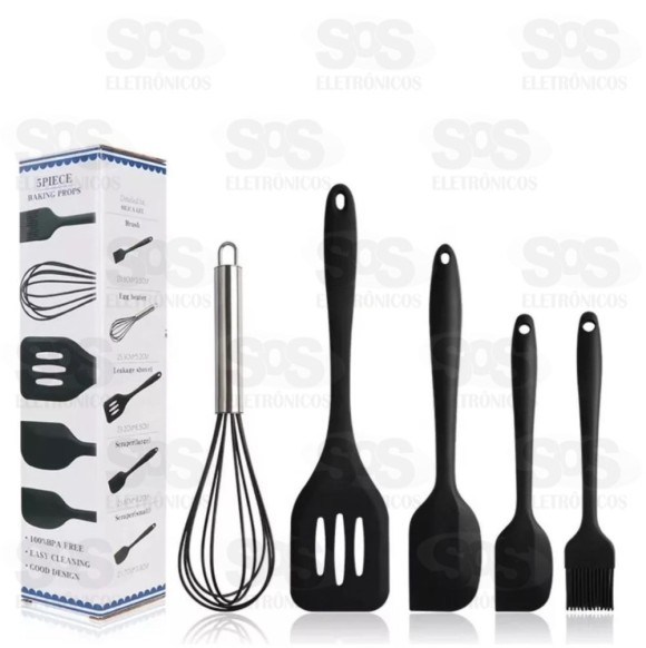 Kit Conjunto de Utensílios em Silicone com 5 Peças