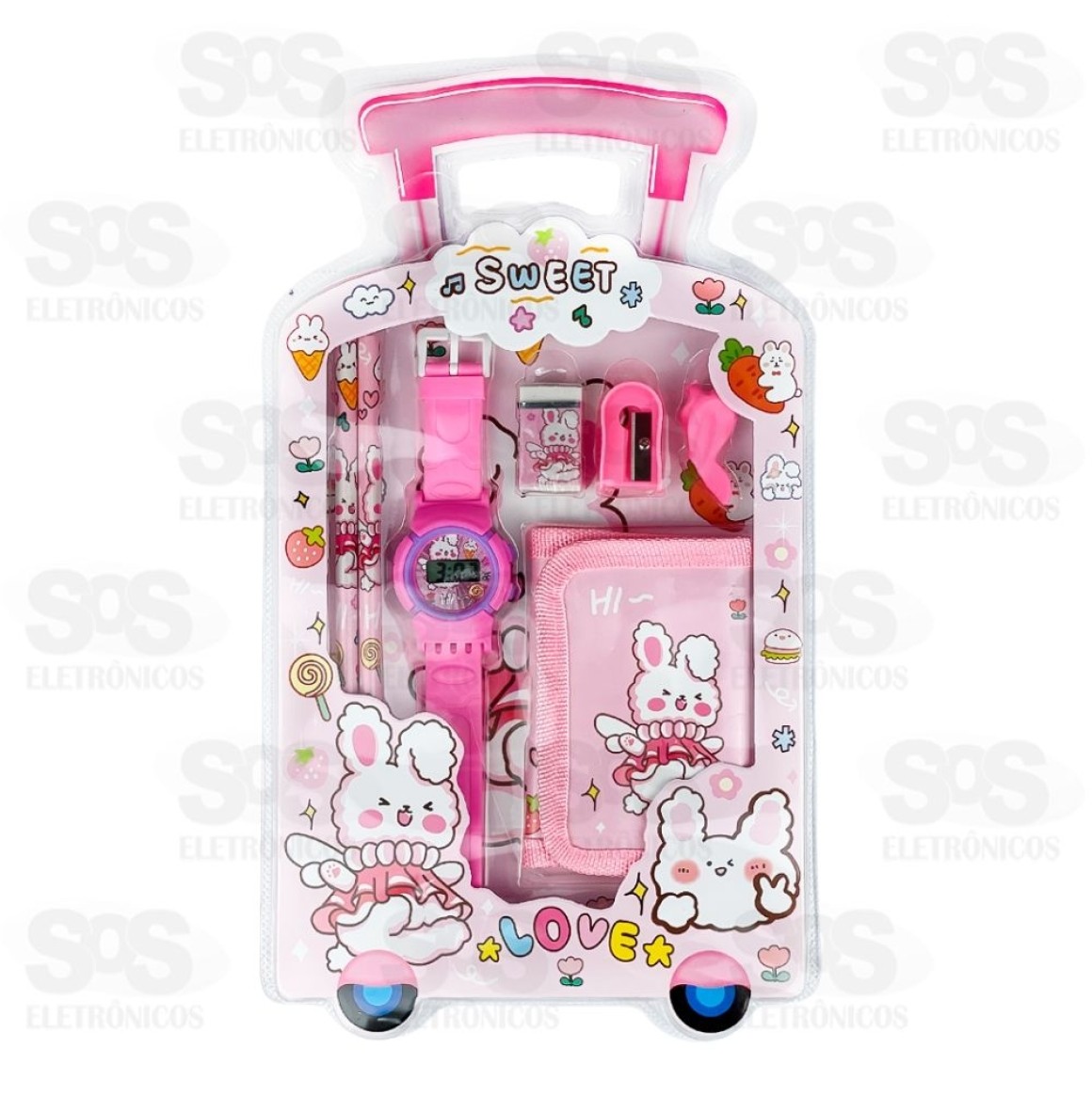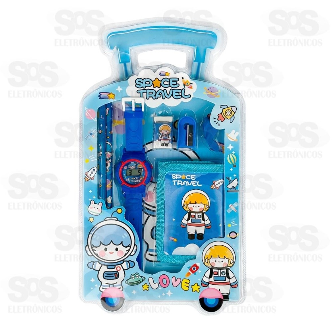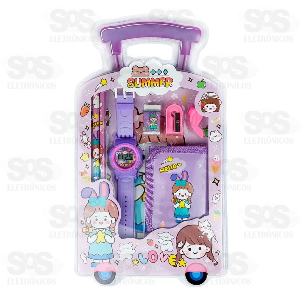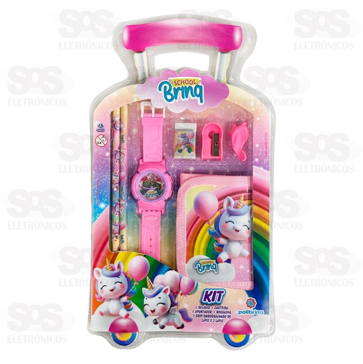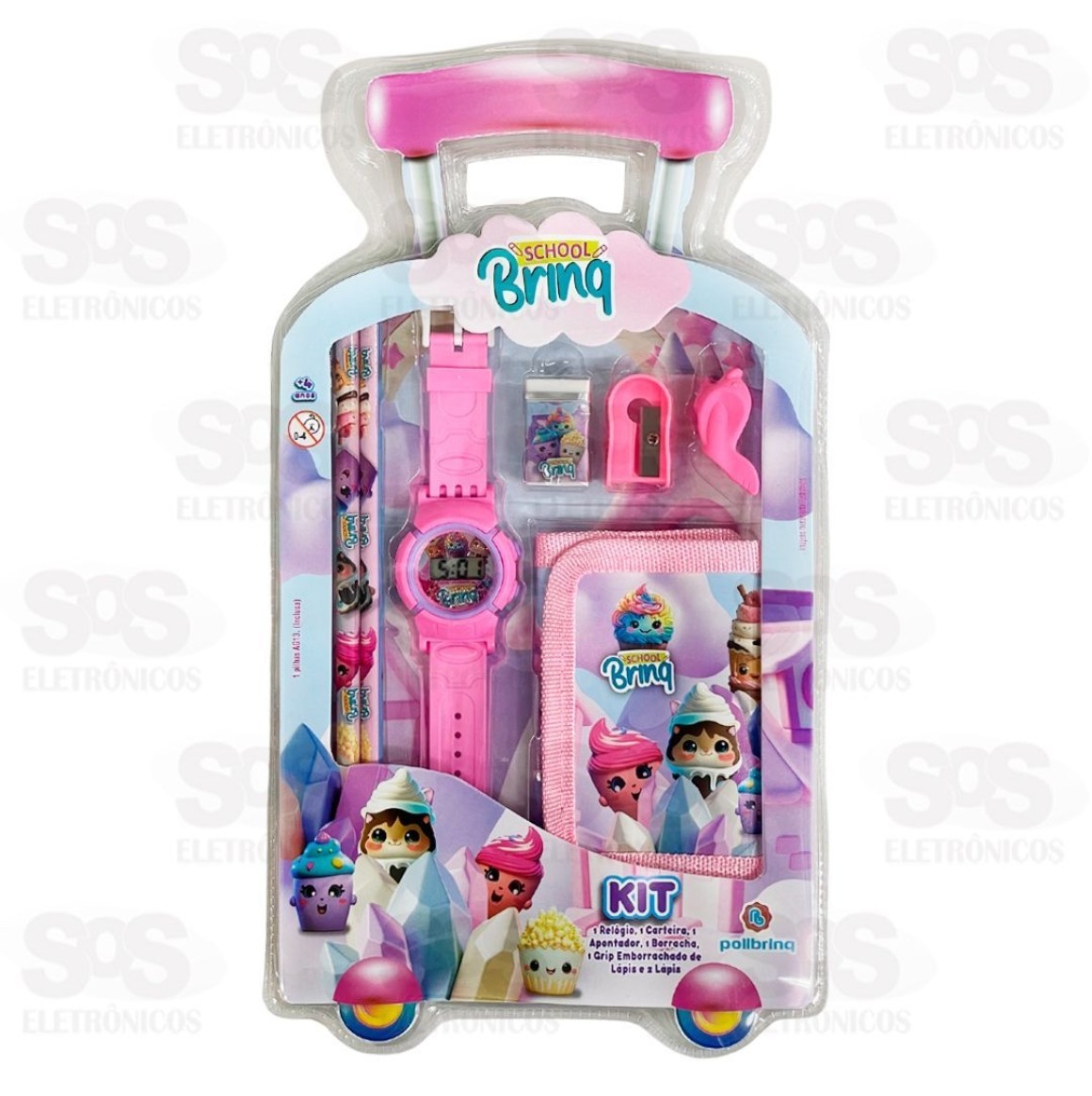 Kit Escolar 7 Peças Com Relógio e Carteira Polibrinq SCB1502 Lápis01 Borracha01 Apontador01 Relógio01 Carteira01 Grip de lápisTamanho: 32 x 2,5 x 18 cmPeso: 120gCores sortidas