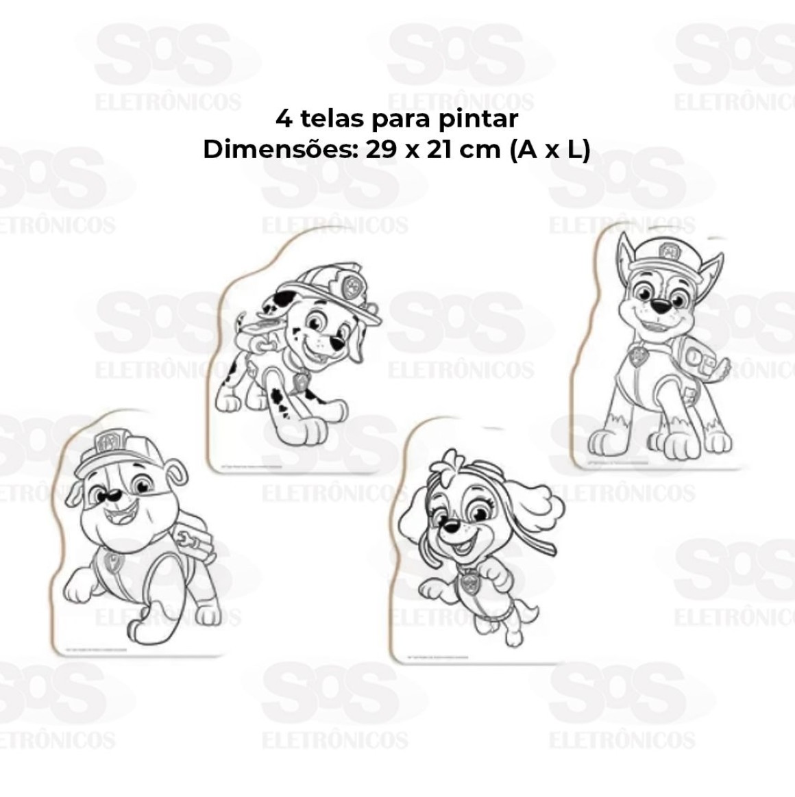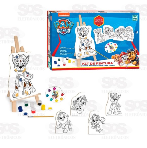 Acompanha 4 telas com desenhos do Marshal, Chase, Rubble, Skye para a criançada se divertir e pintar muito.