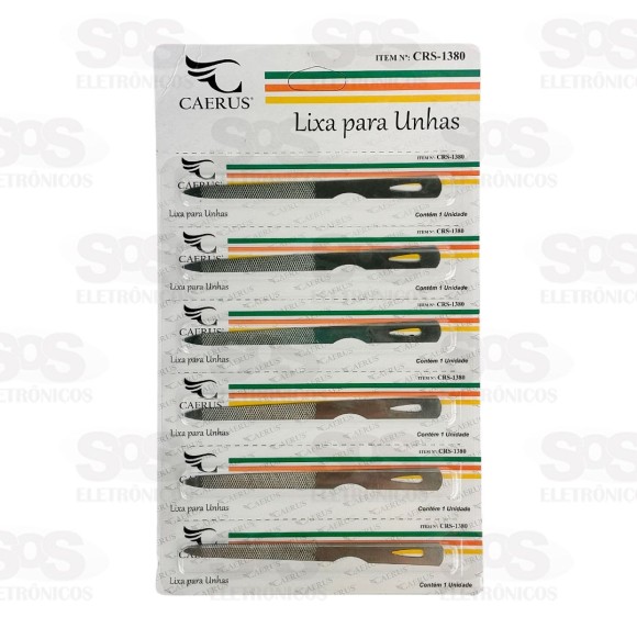 Lixas Para Unhas Aço 6 Unidades Caerus CRS-1380 Cartela com 6 lixas de unha que podem ser usadas tanto em casa quanto em salões de forma profissional. Feitas de aço inox. Tamanho aproximado das lixas: 12 cm Tamanho da cartela: 26 x 15,5 cm