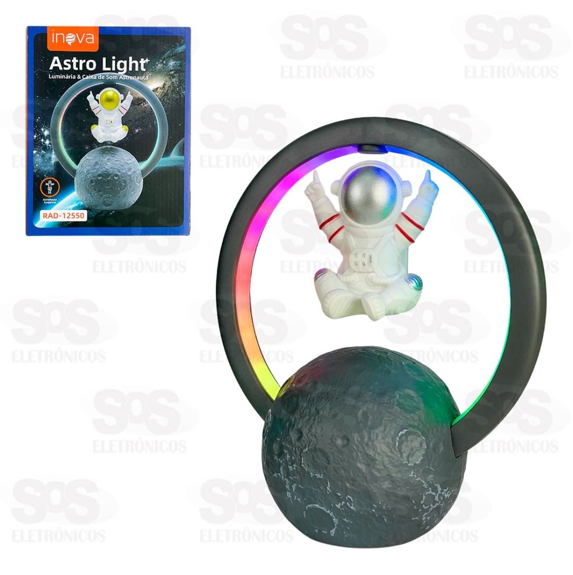 Luminária com Caixa de Som Astronauta na Lua Inova RAD-12550