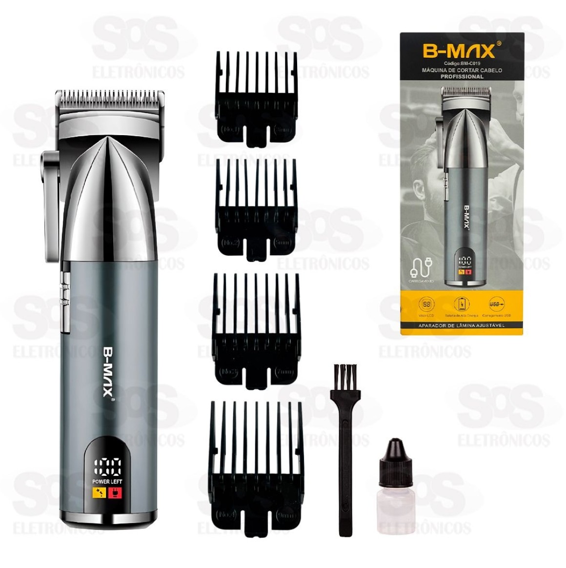 Máquina Profissional De Cortar Cabelo Com Visor LCD B-Max BM-C019